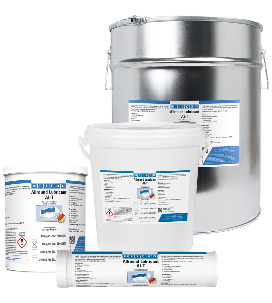WEICON AL-T es adecuado para cojinetes de rodillos y de deslizamiento, articulaciones, palancas, guías de deslizamiento, husillos, ejes estriados, y a todas las velocidades de deslizamiento permitidas para la lubricación con grasa. AL-T puede utilizarse en muchas aplicaciones industriales.