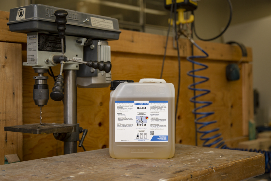 WEICON Bio‑Cut no contiene aceites minerales. Gracias a su elevada capacidad de lubricación permite mayores velocidades de corte, mayor vida útil de la herramienta y, en consecuencia, un mayor rendimiento de corte. WEICON Bio‑Cut puede utilizarse para taladrar, tornear, fresar, escariar, serrar, punzonar y roscar en todos los tipos de acero, hierro fundido, aceros inoxidables, cobre, latón, aluminio y sus aleaciones, en todos los sectores industriales.
