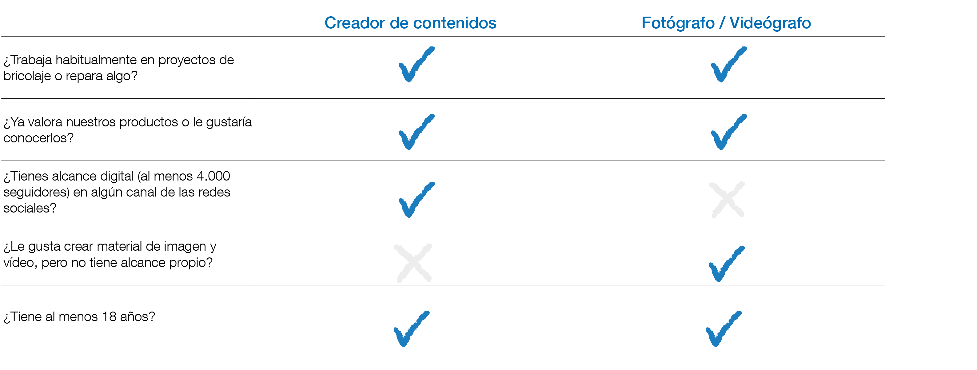 Siempre estamos buscando socios colaboradores que utilicen y presenten nuestros productos en sus proyectos o creen contenidos positivos que podamos utilizar. Seguro que tenemos un producto en nuestra gama que le ayudará a realizar su proyecto con éxito, por ejemplo, para sus instalaciones eléctricas, para convertir su autocaravana o para todo tipo de trabajos en su patio o taller. Averigüe si encajaría bien con nosotros como creador de contenidos o fotógrafo/videógrafo. Si quieres formar parte de nuestro equipo de creadores, sólo tienes que rellenar el siguiente formulario y pronto podrías formar parte de nuestro equipo.
