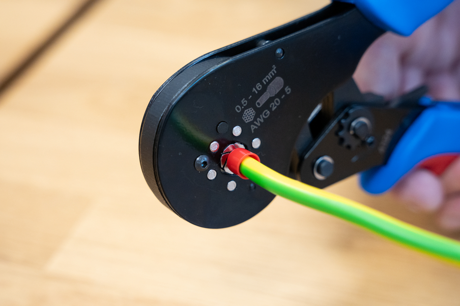 HEX-CRIMP 16 mm² has been specially developed for the process-safe crimping of wire end ferrules. Six synchronously driven dies produce a hexagonal crimp that facilitates the insertion of round terminals. The hexagonal crimp profile with serrated dies made of multi-hardened carbon steel ensures permanent electrical connections. Self-adjustment to the required wire end ferrule enables fast work with different cross-sections. The crimping tool has a ratchet mechanism with a blocking device to ensure a consistently high crimping quality and results that can be precisely repeated. The crimping tool will only open when the crimping process is complete. An emergency release has also been integrated into the handle, which opens the crimping tool in the event of misuse. Thanks to the accurate eccentric setting, the crimping force can be precisely adjusted. As a result, the tool delivers a consistently high crimping quality. The HEX-CRIMP 16 mm² tool can be used to process wire end ferrules in the working range of 0.5-16 mm² (AWG 20-5). The 2-component handles of the crimping tool ensure non-slip and ergonomically friendly handling with maximum force transmission. The tried and tested “ice-crack design” was used, which ensures a comfortable feel. The integrated eyelets on the handles can be used to attach a safety catch.