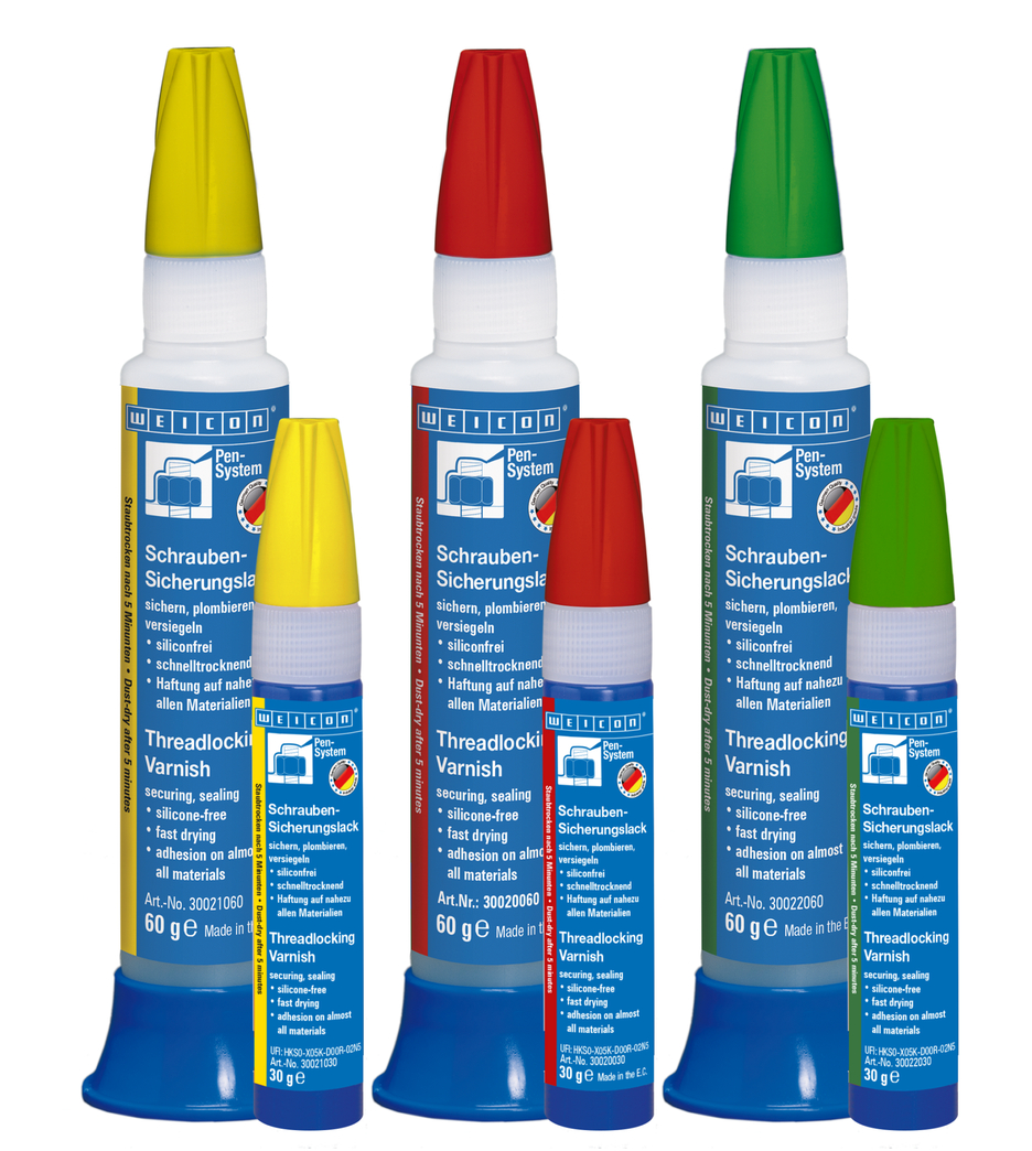 El Lacre de Seguridad para tornillos es un barniz de sellado, identificación y precintado de secado rápido que contiene disolvente con un alto grado de adherencia sobre casi todos los materiales. Se emplea como seguro desmontable para proteger de la intervención de extraños, como cubierta para piezas conductoras eléctricas y para proteger de la corrosión y de las influencias de contactos. El producto es resistente al agua, a la gasolina, al gasóleo, al aceite mineral, al aceite de parafina y a los ácidos y álcalis diluidos. El Lacre de Seguridad es imprescindible para proteger las uniones roscadas de todo tipo. Protege - con un sellado por laca - de manipulaciones y de aflojamiento no autorizado de tornillos y uniones, documenta la gestión de la calidad, el control de la producción y la inspección del producto y se emplea para el control visual de las piezas unidas calibradas. Disponible en los colores amarillo, verde y rojo.