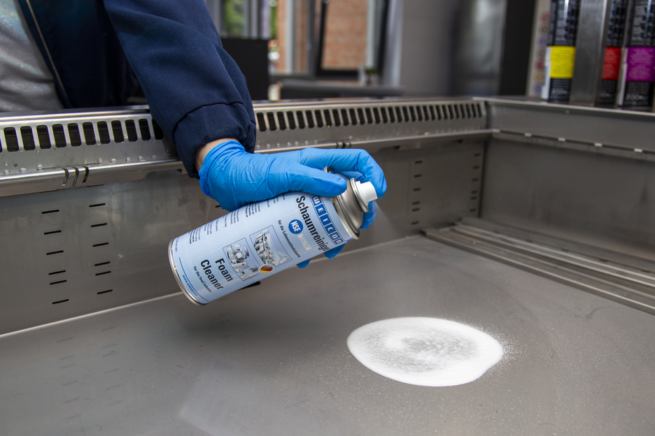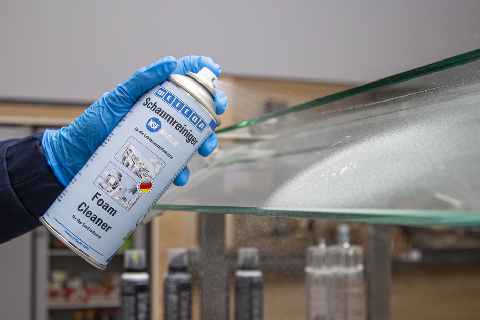 El Limpiador de Espuma WEICON es un producto universal y puede ser utilizado para limpiar y desengrasar superficies resistentes al agua así como para eliminar impurezas en plásticos, vidrio y textiles. Gracias a su certificación NSF grado A1, el Limpiador de Espuma es apto para el uso en sectores sensibles, tales como la industria alimentaria y de bebidas así como en la industria farmacéutica y cosmética. El spray puede ser aplicado para la limpieza de cintas de transporte que están en contacto con alimentos, tanto en la producción como en el comercio al por menor. Elimina la suciedad en carcasas de máquinas y básculas, pantallas planas, pantallas táctiles, sistemas de navegación y muchos más. El Limpiador de Espuma elimina las más diversas impurezas como aceites y grasas, huellas dactilares, hollín, nicotina, polvo así como residuos de insectos. Puede ser utilizado en todas las áreas donde no se pueden trabajar con limpiadores ácidos o alcalinos.