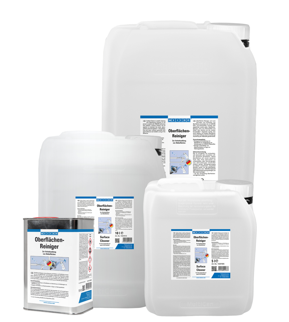 El Limpiador de Superficies WEICON se utiliza para limpiar y desengrasar las superficies que deben pegarse o sellarse con adhesivos y selladores WEICON. El Limpiador Rápido puede ser aplicado en diversos materiales, tales como metal, vidrio, cerámica y la mayoría de plásticos. Puede utilizarse, por ejemplo, para limpiar y desengrasar piezas de máquinas dentro del margen de trabajos de mantenimiento.