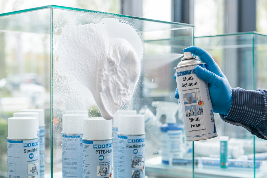 El Spray Multiespuma WEICON es un poderoso limpiador universal que no deja residuos después de la limpieza, es exento de fosfatos, formaldehídos y aditivos corrosivos cáusticos. Multiespuma limpia las más diversas superficies tales como de metales, plásticos, vidrio, cerámica o superficies pintadas y revestidas. El Spray Multiespuma WEICON es de aplicación universal y puede utilizarse tanto por la industria y y trabajadores profesionales como también en el sector privado.