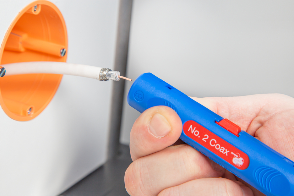 para pelar y desaislar cables coaxiales, rango de trabajo 4,8 - 7,5 mm Ø
