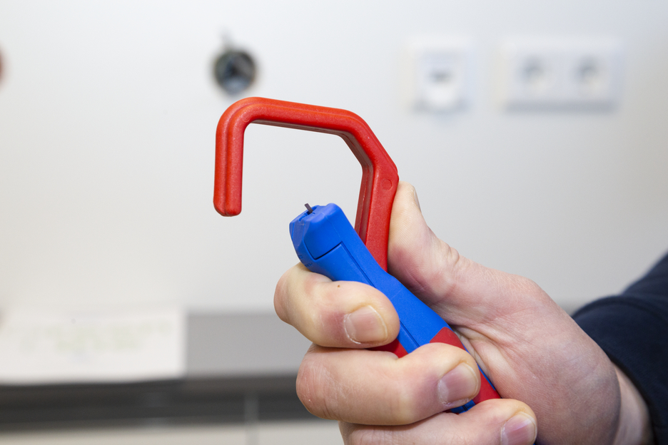 Rango de trabajo 35 - 50 mm Ø Gran diámetro del mango para una háptica óptima Tornillo de ajuste regulable sin escalonamientos y fácil de accionar Pelado preciso, rápido y seguro Cambio rápido de la cuchilla interior con cierre de bayoneta