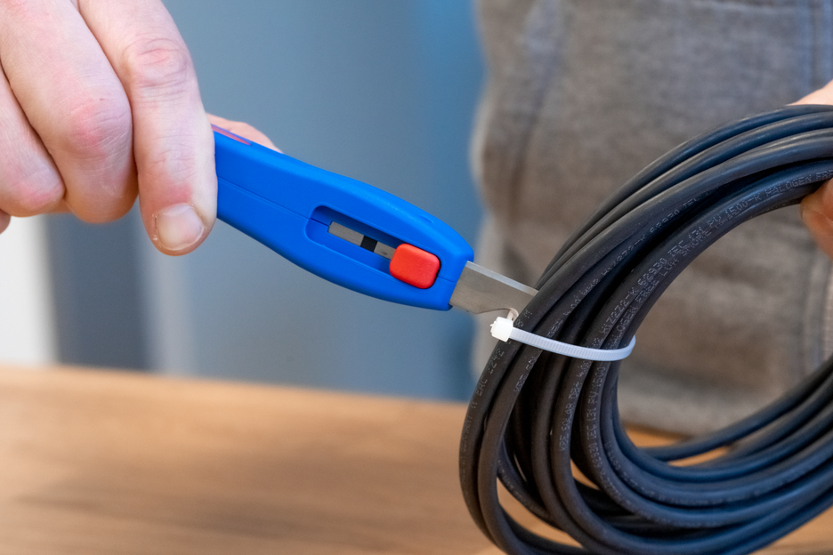 con cuchilla de gancho retráctil, rango de trabajo 4 - 28 mm Ø