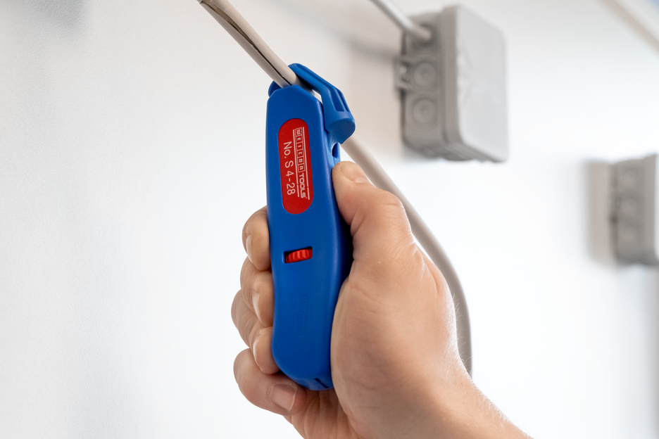 Rango de trabajo 4 - 28 mm Ø Totalmente ergonómico y completamente aislado Rueda de ajuste regulable sin escalonamiento y de fácil manejo Pelado preciso, rápido y seguro