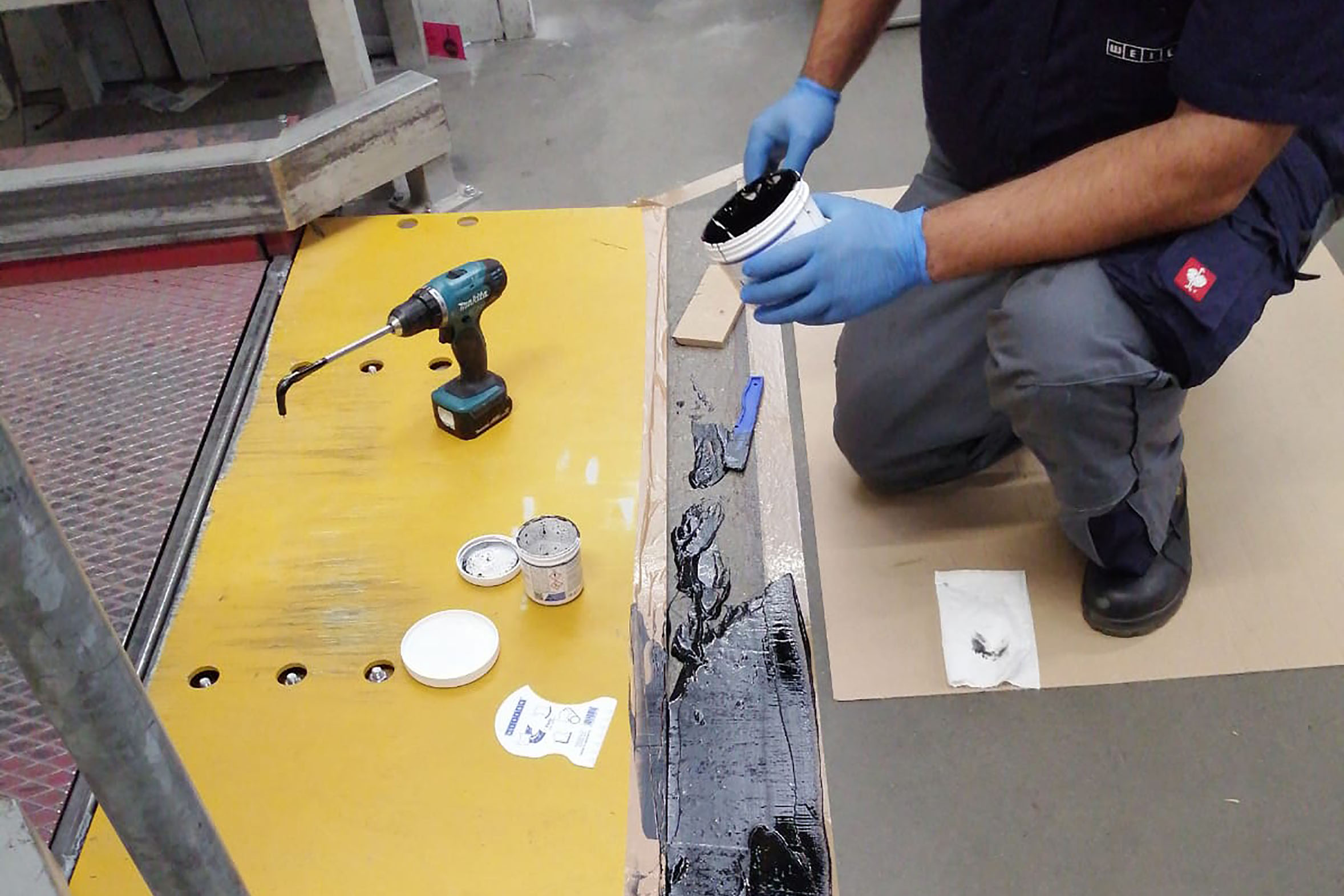 Uneven surfaces on ramps make it difficult for agricultural machinery to drive over them, while damaged conveyor belts disrupt operations. Both problems can be solved efficiently with WEICON Belt Repair-Kit. WEICON Belt Repair-Kit is a 2-component polyurethane system for the fast repair and coating of rubber surfaces.