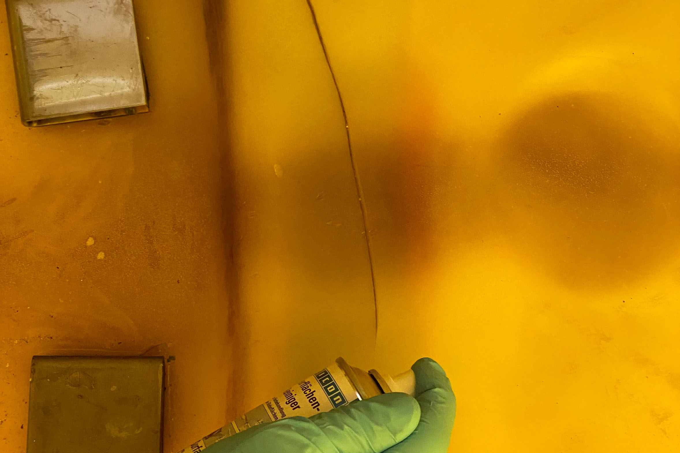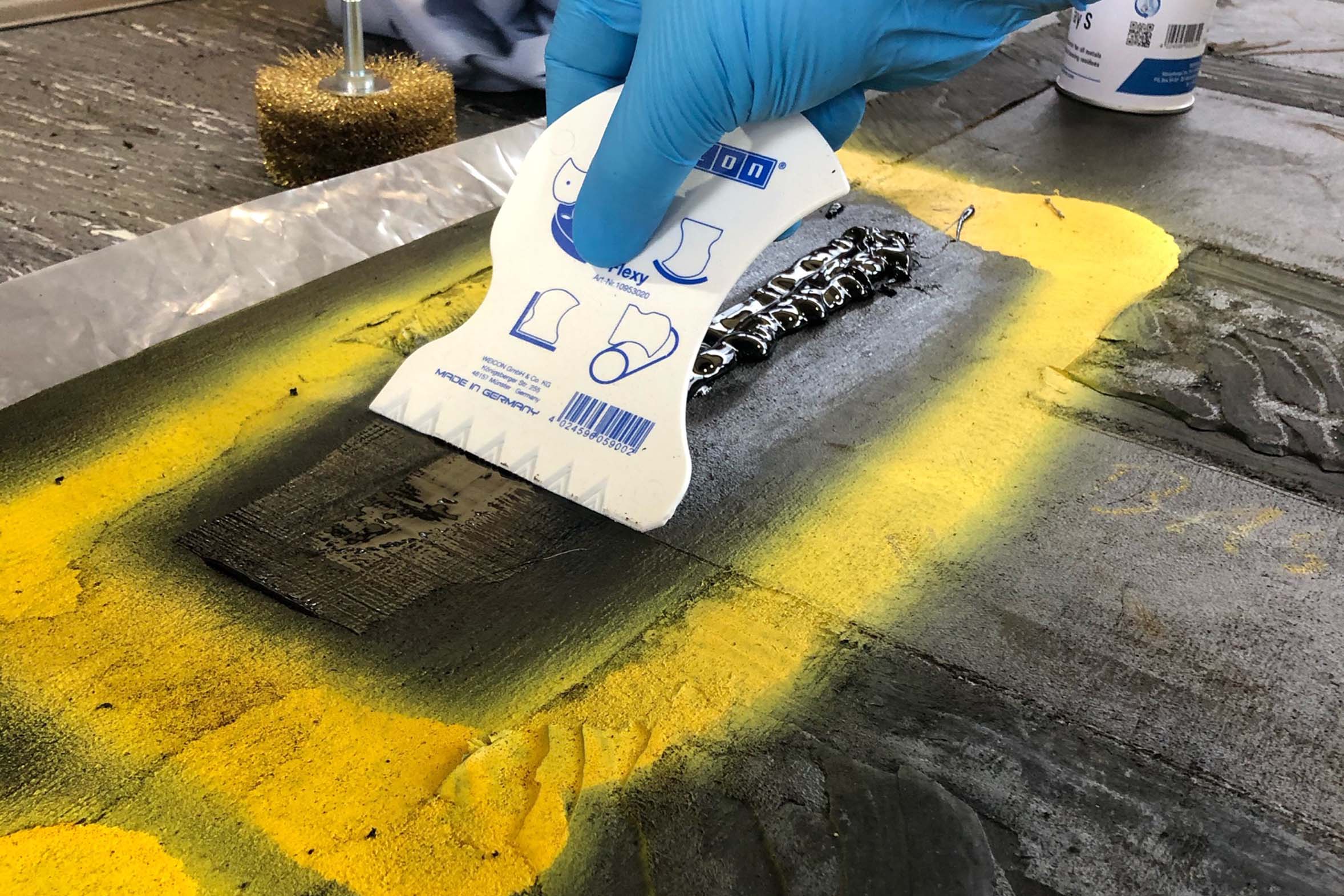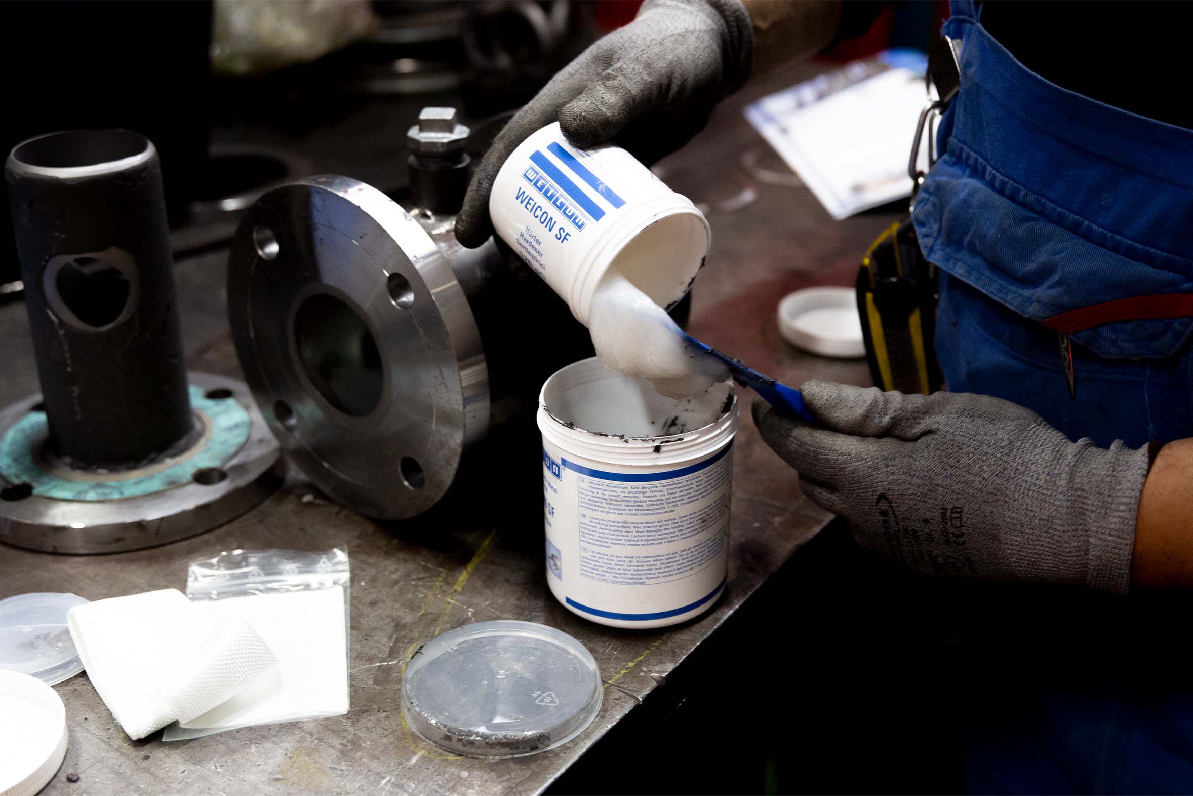 To carry out repairs, the damaged blade sections are initially stabilised with WEICON Repair Stick Multi. This universal repair putty adheres reliably to metal, is easy to use and hardens quickly. Subsequently, the structure is rebuilt in layers using WEICON Casting Resin MS 1000 – a high-strength epoxy resin system specifically designed for bonding, laminating and casting applications. The final coating with WEICON Ceramic HC 220 ensures maximum wear protection. Thanks to its ceramic filling and high temperature resistance, it protects the propeller from abrasion and chemical influences permanently.