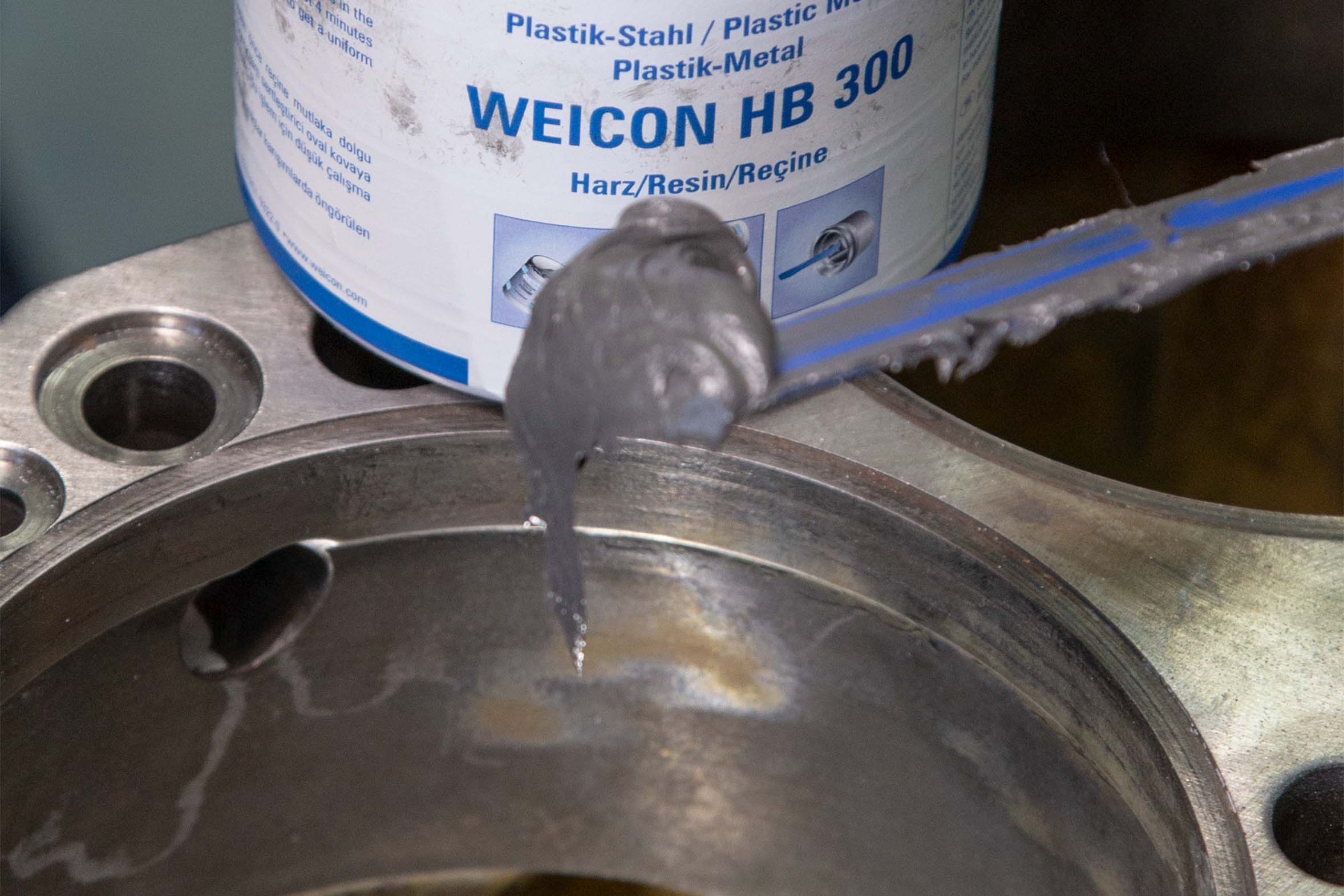 WEICON HB 300 is highly temperature-resistant and is ideal for the repair and protection of heavily stressed metal components such as exhaust manifolds, gearbox housings or heat-exposed conveyor systems. Thanks to its firm consistency, it is also suitable for use on vertical surfaces.