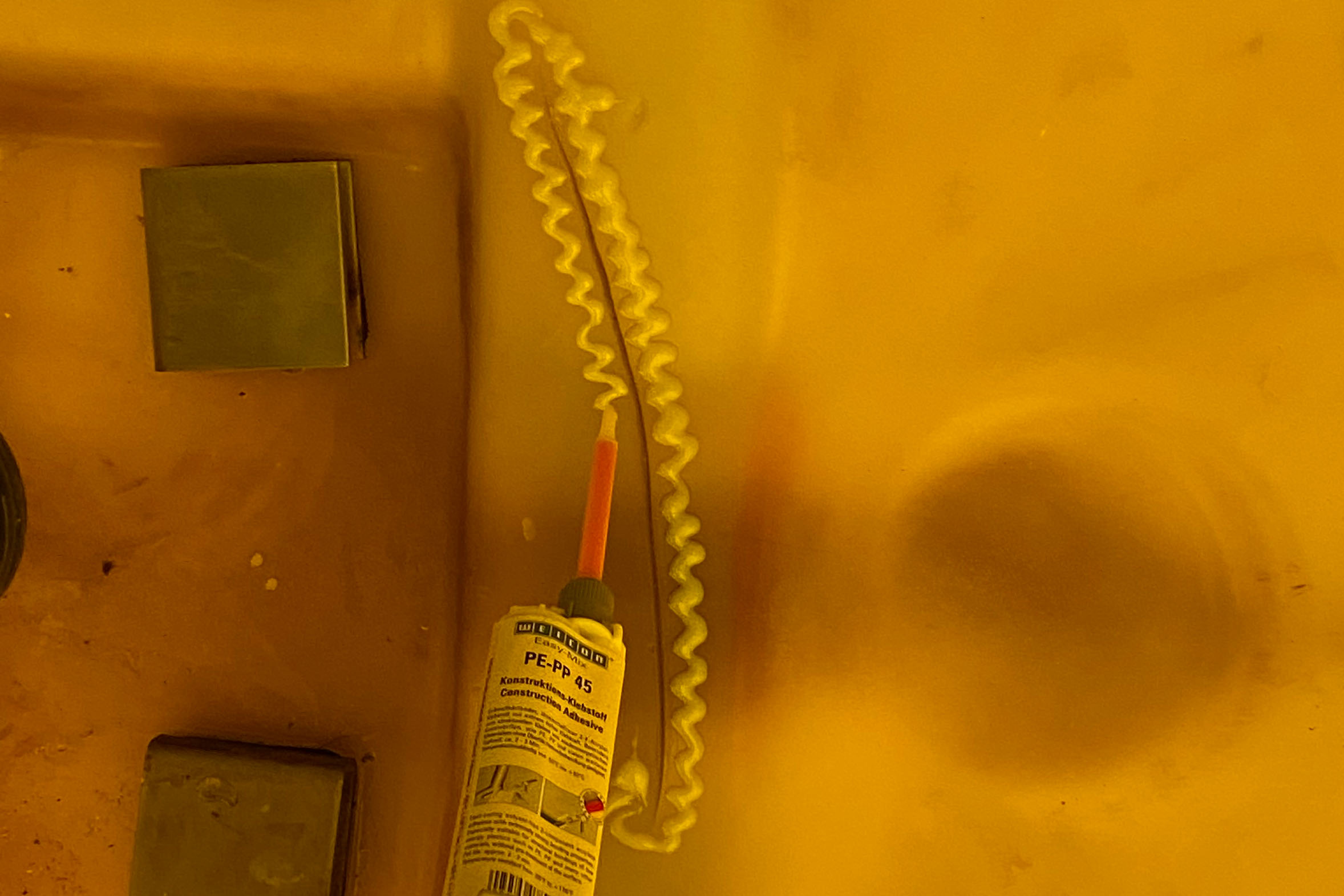 The repair with WEICON Easy-Mix PE-PP 45 not only saves costs but also prevents potential environmental damage from leaking liquids. Thanks to the adhesive's high resistance to weathering and chemicals, the repair is permanent and reliable.