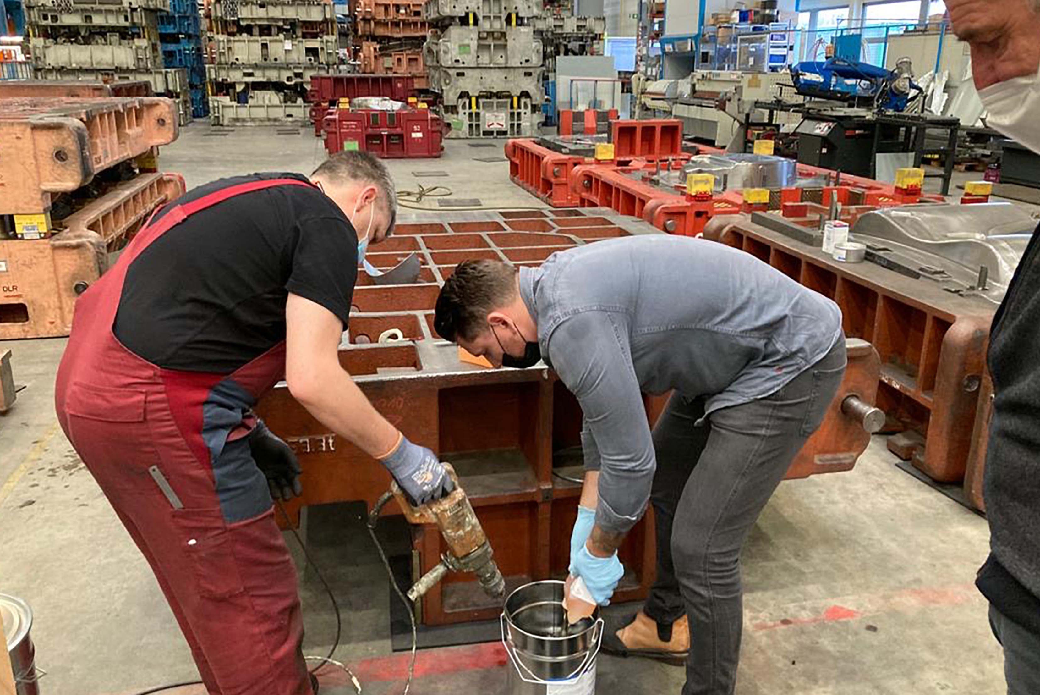 Reparación de grietas en una herramienta de moldeado para parachoques en la industria del automóvil