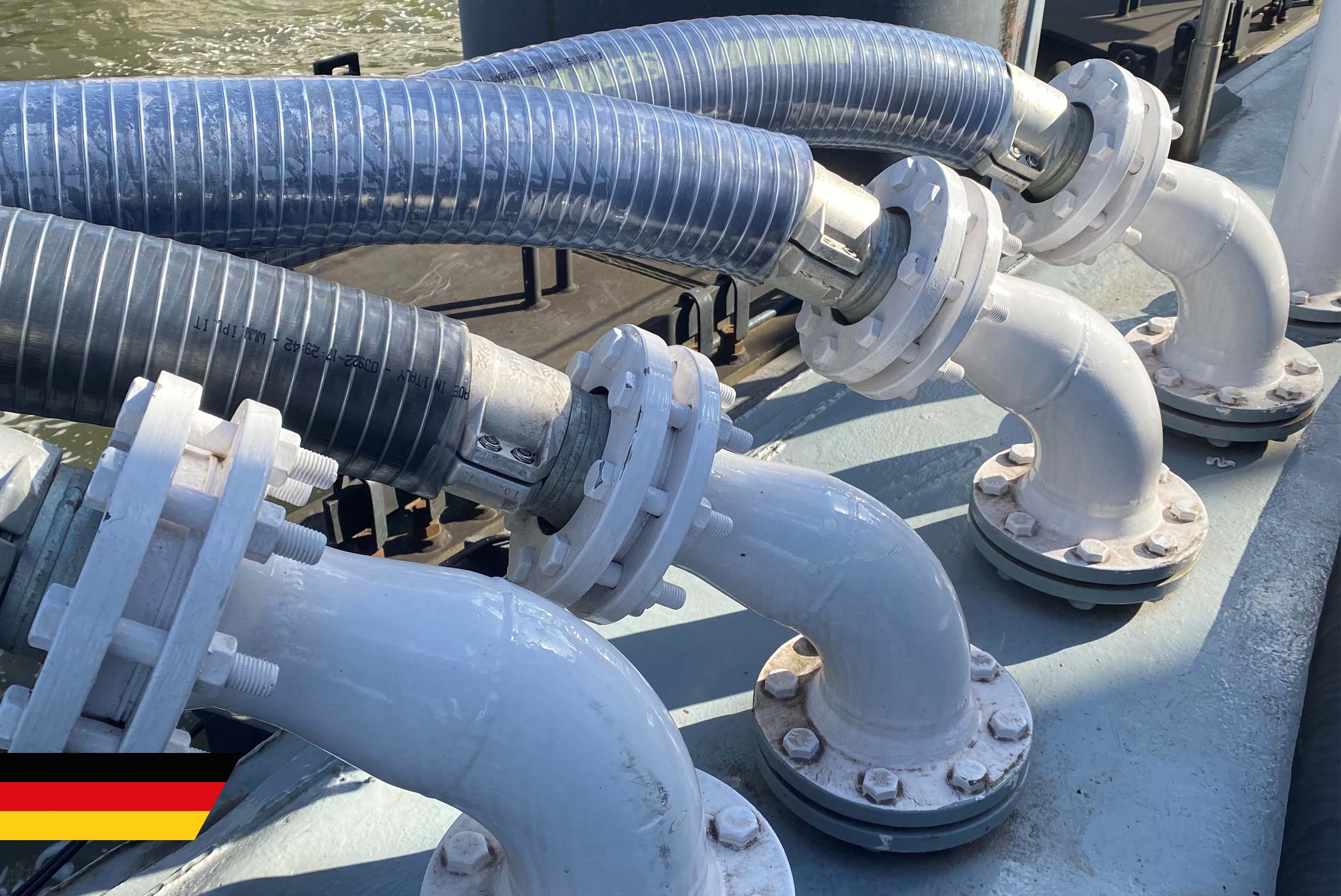Colocación y alineación de cubiertas de mangueras y acoplamientos en la gasolinera de un puerto