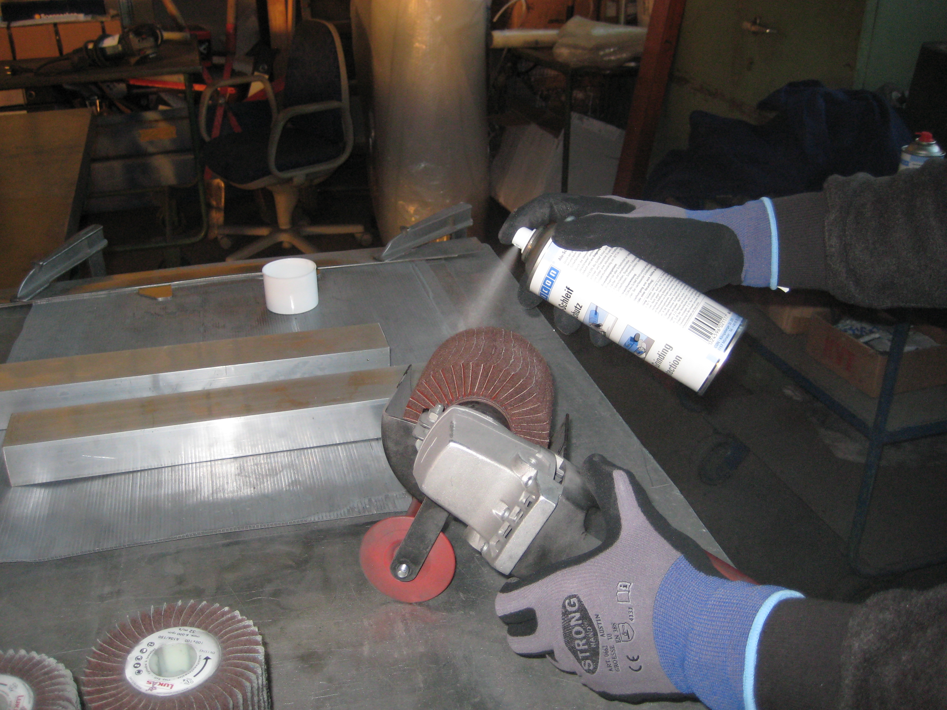El Protector para Abrasivos WEICON actúa durante el proceso abrasivo como un refrigerante y antiadherente. Reduce la temperatura en el lugar de ataque y forma sobre el medio abrasivo una capa antiadherente exenta de silicona. El Protector de Abrasivos evita el "engrase" de modo que los poros de los medios abrasivos permanecen abiertos. El Protector de Abrasivos permite prolongar considerablemente la vida útil de un disco abrasivo y el rendimiento abrasivo puede aumentar hasta un 350%. El Protector para Abrasivos WEICON puede utilizarse para todos los medios abrasivos en asientos tales como discos de fibra, pliegos de lijar, cintas abrasivas sinfín, casquillos abrasivos, lijadoras vibratorias y máquinas especiales.