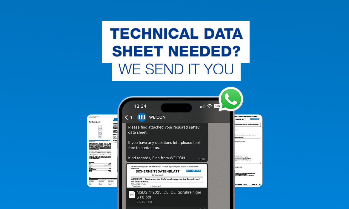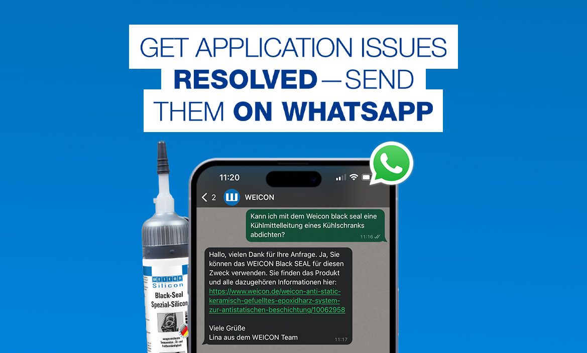¿Desea ponerse en contacto con nosotros en cualquier momento y lugar, enviarnos fotos de su aplicación o utilizar el buscador de WEICON TOOLS? ¿Tiene preguntas sobre nuestros productos, busca a la persona de contacto adecuada o desea hacer un pedido por WhatsApp de forma rápida y sencilla? ¡Hemos hecho todo esto posible para usted! Utilice nuestro servicio de WhatsApp o suscríbase a nuestro boletín de WhatsApp o a nuestro nuevo canal de WhatsApp.