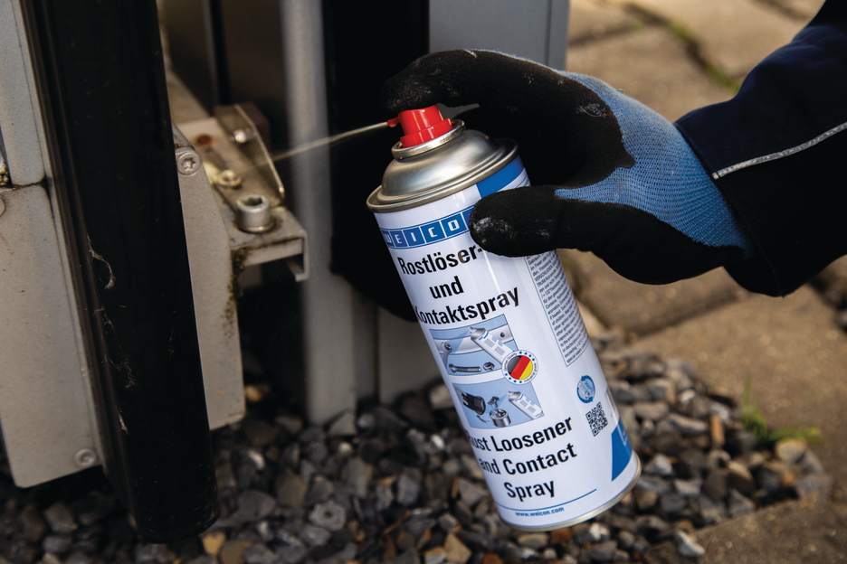 El Spray Aflojatodo WEICON es imprescindible para la reparación, conservación y mantenimiento, debido a su efecto séxtuple. Gracias a sus excelentes propiedades de penetración, el Spray Aflojatodo penetra incluso en los intersticios más pequeños. Con la válvula rociadora de tres vías es posible trabajar en cualquiera posición (incluso por encima de la cabeza). El Spray Aflojatodo WEICON afloja componentes, uniones atornilladas, pernos, articulaciones y bisagras bloqueados por el óxido o duros de mover, repele al agua de sistemas de encendido, asegura el funcionamiento de piezas mecánicas y contactos, por ejemplo, en las tapas de distribuidor y en las bujías de encendido, protege duraderamente contra la corrosión y el óxido, lubrica duraderamente las superficies de deslizamiento, conserva y limpia superficies metálicas, piezas mecánicas e instalaciones