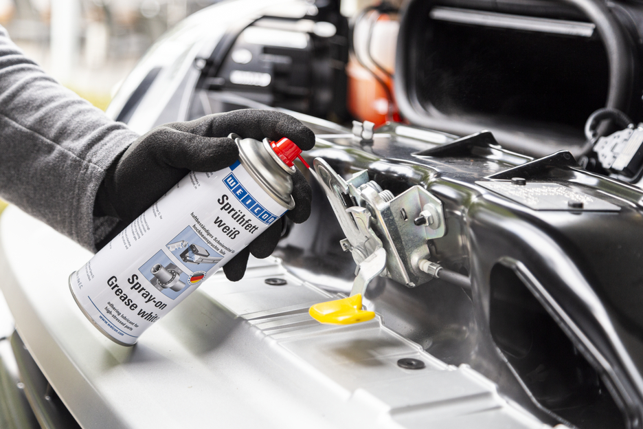 El Spray Grasa Blanca WEICON es un spray de grasa multiusos para piezas de servicio pesado con una excelente adherencia y una muy buena resistencia al envejecimiento y a la presión. La mezcla de aditivos anticorrosivos especialmente reductores del desgaste permite obtener la resistencia a temperaturas de -20 hasta +150 °C (-4 hasta +302 °F) en combinación con una prolongada vida útil. En comparación con productos transparentes es posible en cualquier momento un control visual. El Spray Grasa Blanca WEICON puede aplicarse para la lubricación de larga duración de varillaje y ruedas dentadas, rodillos y cojinetes de bolas, bisabras y guías y todo tipo de articulaciones y acoples.