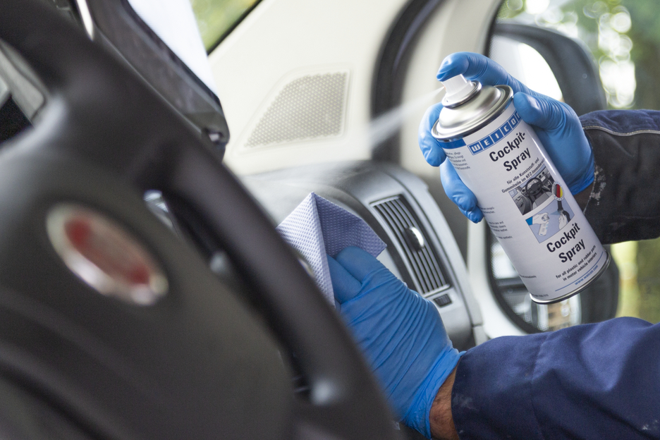 El Spray Limpia Salpicaderos WEICON es un conservante repelente de agua para todas las piezas de plástico y goma, así como para las superficies de madera pintadas en el interior de vehículos. La película protectora duradera e invisible evita la suciedad y proporciona una brillantez sedosa fácil de limpiar y repelente al polvo. El Spray Limpia Salpicaderos renueva los plásticos apagados y deslucidos, la goma no se agrieta conservando su flexibilidad y elasticidad. El Spray Limpia Salpicaderos WEICON elimina chirridos y crujidos, protege los salpicaderos, los revestimientos interiores, todas las piezas de plástico y goma, cuero, madera y cromo así como los techos con fundas de cuero artificial, evita el congelamiento de las juntas de puertas, ventanas y maleteros, se usa como lubricante de cinturones de seguridad, guías de asientos, techos corredizos, guías de ventanas, cerraduras de puertas y en todo donde que las grasas causarían suciedad.
