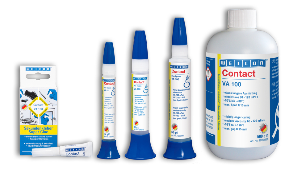 WEICON Contact VA 100 es un adhesivo de tipo universal para pegar metales, plásticos y caucho. Estos materiales pueden ser pegados entre si mismos como también pueden ser pegados a otros materiales. VA 100 es ideal para el sector del "bricolaje", pero también puede utilizarse en muchos otros sectores de la industria.