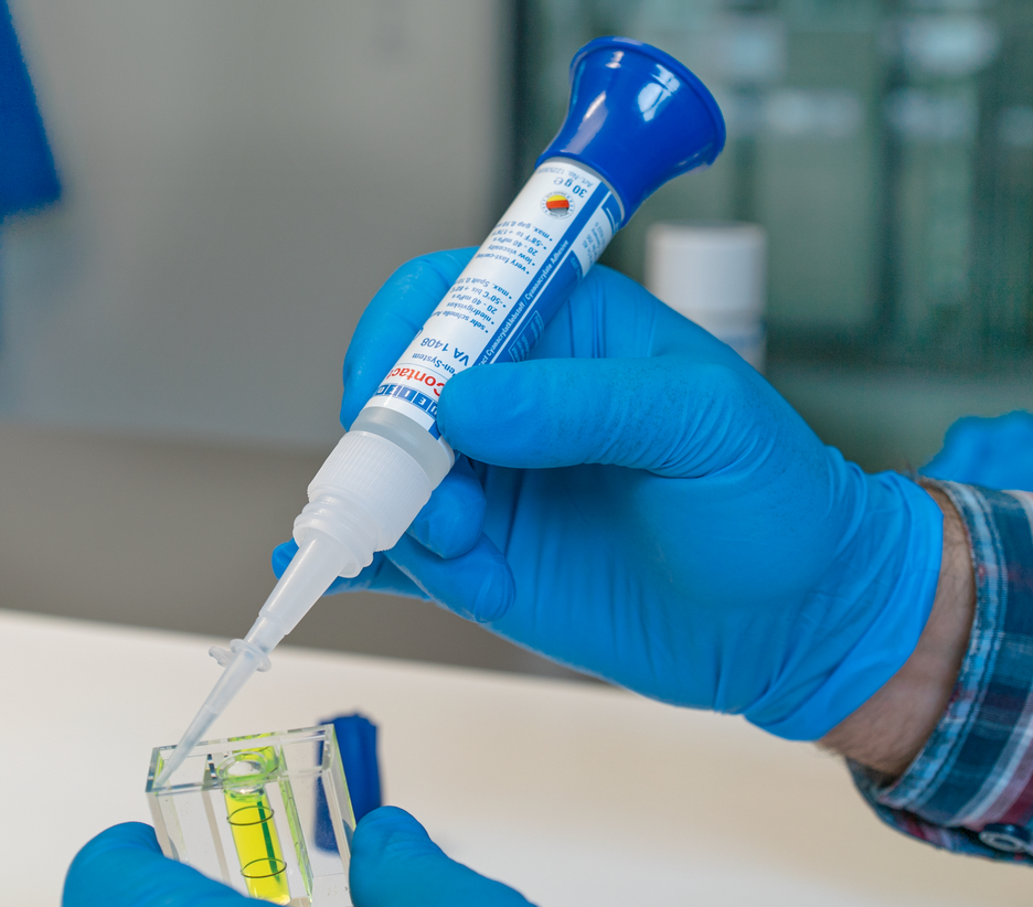 Adhesivo de cianoacrilato para requerimientos especiales | viscosidad baja | tiempo más largo de endurecimiento | poco oliente y poco escarchante