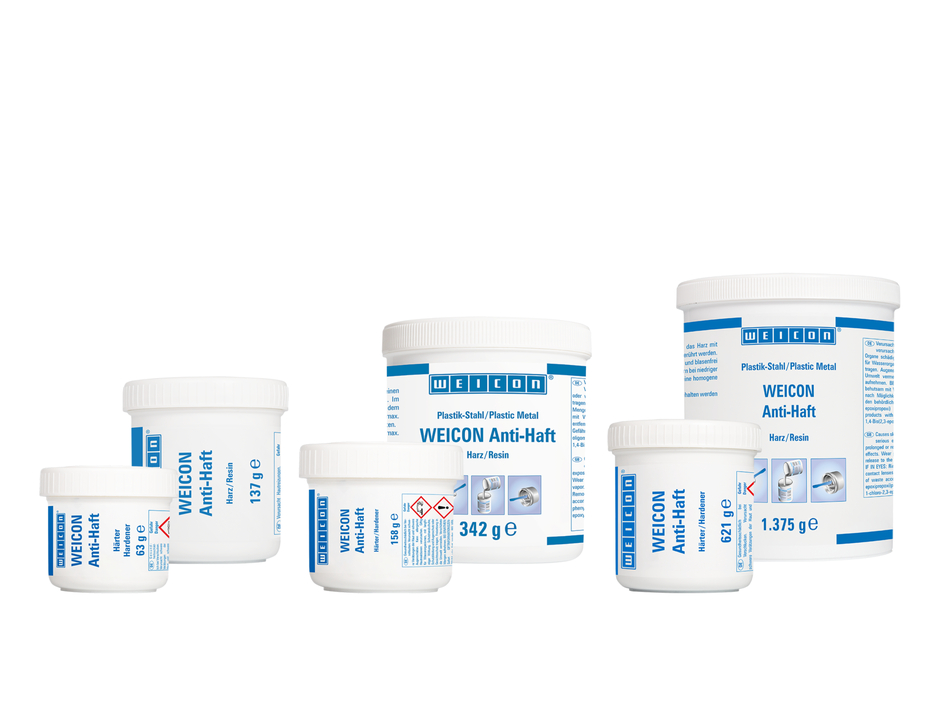 WEICON Anti-Stick es un sistema de resina epoxi líquida, gris, bicomponente, con cargas minerales para la protección de superficies sometidas a grandes esfuerzos contra productos químicos agresivos, corrosión y desgaste mecánico. Se ha desarrollado especialmente para su procesamiento con un sistema de baja presión. Además de las cargas minerales, Anti-Stick contiene aditivos especiales que crean un efecto antiadherente efecto antiadherente y evitan así que la harina, el polvo o las partículas en suspensión, por ejemplo, se adhieran. El sistema de resina epoxi tiene una buena resistencia química y térmica de hasta +120 °C. No contiene disolventes y cura prácticamente sin contracción. Un recubrimiento con WEICON Anti-Stick, ofrece a las superficies un acabado muy suave, aumenta la velocidad de flujo de los líquidos y aumenta la eficiencia de bombas, tuberías, válvulas, etc. en un 5 % a 20 %. Anti-Stick se aplica directamente sobre las piezas mediante chorro de arena tras una preparación minuciosa del sustrato. El revestimiento se adhiere muy bien a una amplia variedad de superficies y es adecuado para muchas diferentes piezas, como cojinetes lisos, tolvas, embudos y tuberías, así como para el revestimiento de piezas de fundición y válvulas. El sistema puede utilizarse en ingeniería mecánica y de instalaciones, en la construcción de aparatos, en la industria papelera, en la industria de productos a granel, en sistemas de gases de escape, en la minería a cielo abierto, en plantas químicas y en muchos otros ámbitos producción industrial. En cualquier caso, se recomienda condiciones prácticas, especialmente si las piezas están expuestas adicionalmente a temperaturas elevadas o tensión mecánica. WEICON Anti-Stick es adecuado por sí solo o en combinación con otros tipos de WEICON plásticos metálicos para un sistema de como recubrimiento antiadherente.