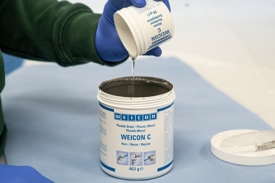 Sistema de resina epoxi con buena fluidez y resistencia a la temperatura, especialmente para el uso industrial. No corrosivo, anti-magnético, seca prácticamente sin contracción. WEICON C es especialmente apto como adhesivo en aplicaciones con superficies grandes, para la colada de moldes y para la elaboración de dispositivos de fijación y herramientas (p. ej. moldes para la inyección de plásticos). Puede aplicarse en la construcción de herramientas y moldes así como en una gran cantidad de otros campos industriales, especialmente en aplicaciones con altas temperaturas.