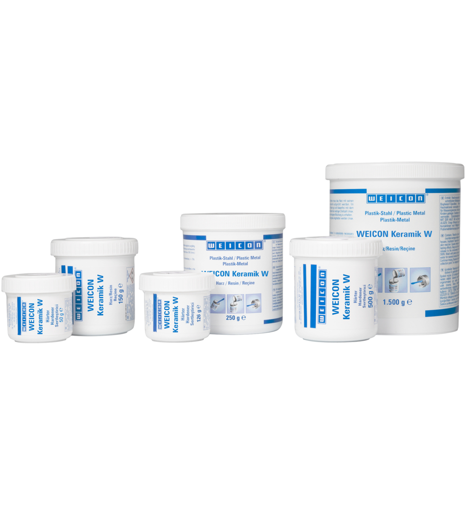 El sistema de resina epoxi WEICON Cerámica W ofrece una alta protección contra el desgaste y resistencia a la abrasión. Es resistente a los productos químicos y tiene una alta resistencia a la temperatura de hasta +230 °C ; para períodos cortos incluso hasta +250 °C. Cerámica W no gotea, se puede aplicar con espátula en superficies verticales e incluso por encima de la cabeza. Es apto para uniones y revestimientos de piedras de óxido de aluminio en la construcción de molinos, para revestir carcasas de bombas de servicio pesado, para proteger cojinetes de fricción, rampas de deslizamiento, tuberías y para todo proceso en que, por razones ópticas, no deben utilizarse productos oscuros. Puede utilizarse en la construcción de máquinas, instalaciones, molinos y aparatos así como en muchos otros ámbitos de la industria.