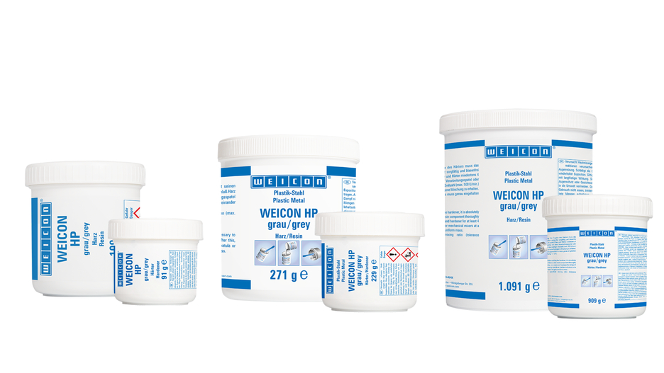 WEICON HP gris es una resina epoxi de 2 componentes prácticamente sin contracción con elasticidad residual que ofrece una resistencia al impacto extremadamente alta y una gran resistencia a la abrasión. El sistema de resina epoxi pastosa puede utilizarse como solución de alto rendimiento especialmente para la unión adhesiva estructural. Debido a su alto alargamiento a la rotura, WEICON HP gris se puede utilizar para reparaciones en maquinaria con fuertes vibraciones, como protección contra el desgaste para cojinetes lisos, canaletas y tuberías, así como para el revestimiento de carcasas de bombas sometidas a grandes cargas. El adhesivo puede utilizarse universalmente en casi todas las superficies. Su textura pastosa hace que no gotee y sea untable. De este modo, también puede utilizarse en superficies verticales e incluso en aplicaciones aéreas. WEICON HP gris se puede utilizar en ingeniería mecánica y de plantas, en ingeniería de aparatos y en muchas otras áreas de la industria.