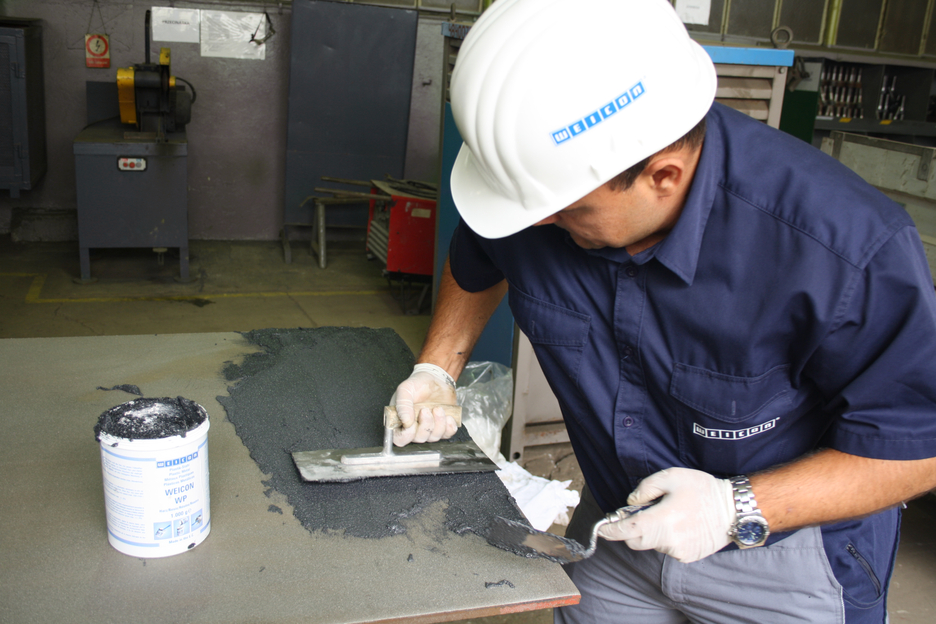 WEICON WP es adecuado para la protección de superficies sometidas a grandes esfuerzos. Un revestimiento con el sistema de resina epoxi ofrece una gran resistencia al desgaste y a la abrasión y es extremadamente resistente a los productos químicos. WEICON WP Plástico Metálico evita la pérdida de metales y reemplaza aleaciones, baldosas cerámicas o revestimientos de goma hasta ahora convencionales y resistentes al desgaste así como coberturas de metal soldado. Este producto puede utilizarse tanto para regenerar superficies metálicas desgastadas como también para aplicar revestimientos resistentes al desgaste. La protección es especialmente eficiente, cuando el desgaste es causado por partículas que chocan lateralmente.